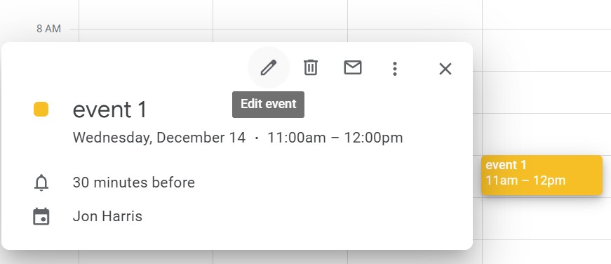 - Cliquez sur l’un de vos événements de calendrier et sélectionnez l’option « Modifier l’événement »