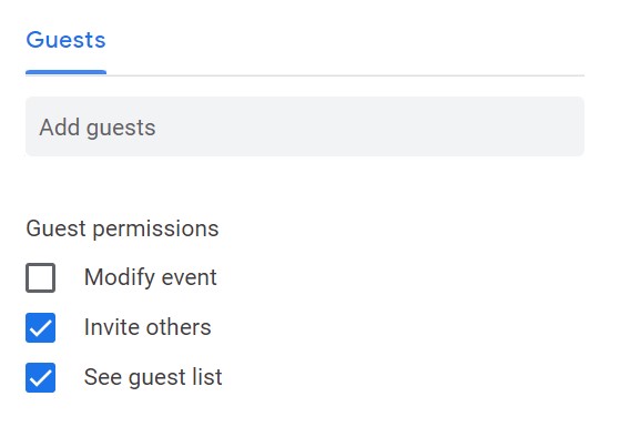 - (facultatif) Cliquez sur « Autorisations des invités » et cochez les cases appropriées pour accorder aux invités la possibilité de modifier un événement, d’inviter d’autres personnes ou d’afficher la liste des invités.